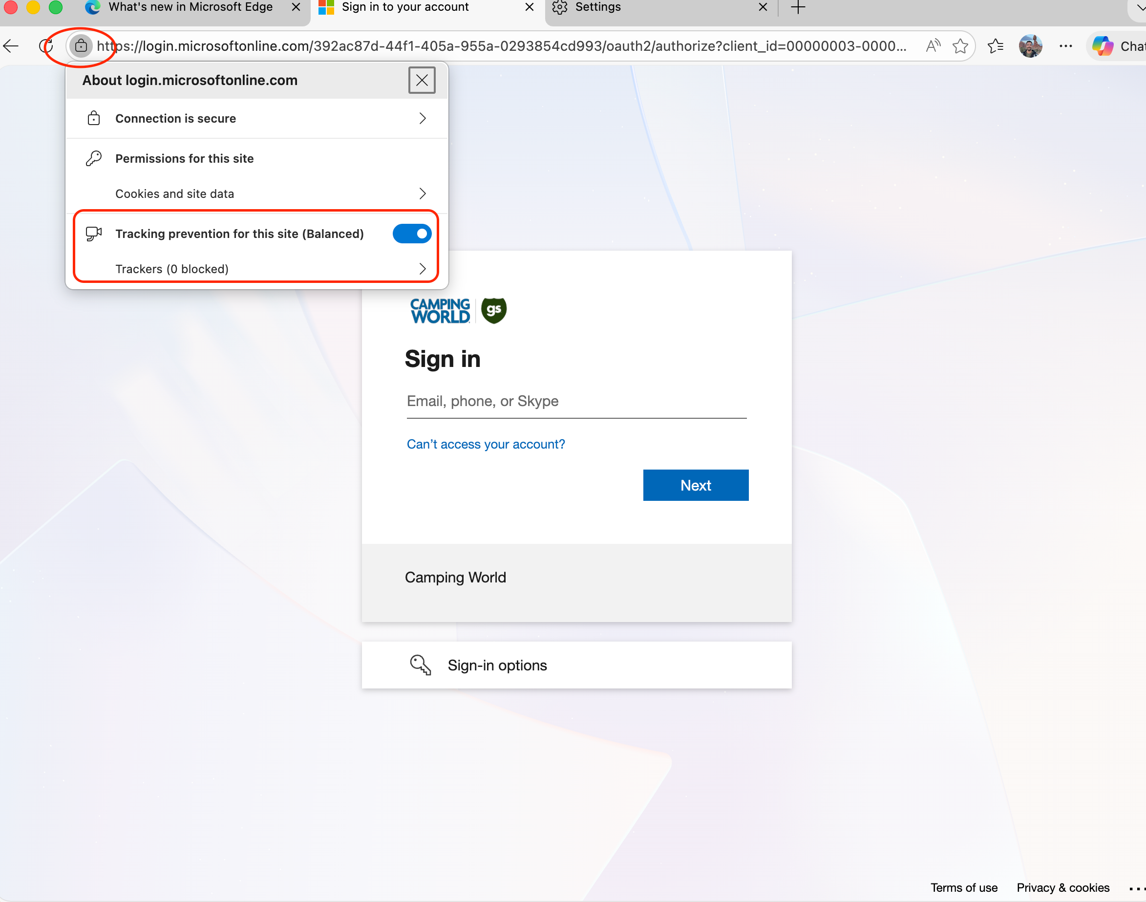 Alternative: Adjust Tracking Prevention Settings
