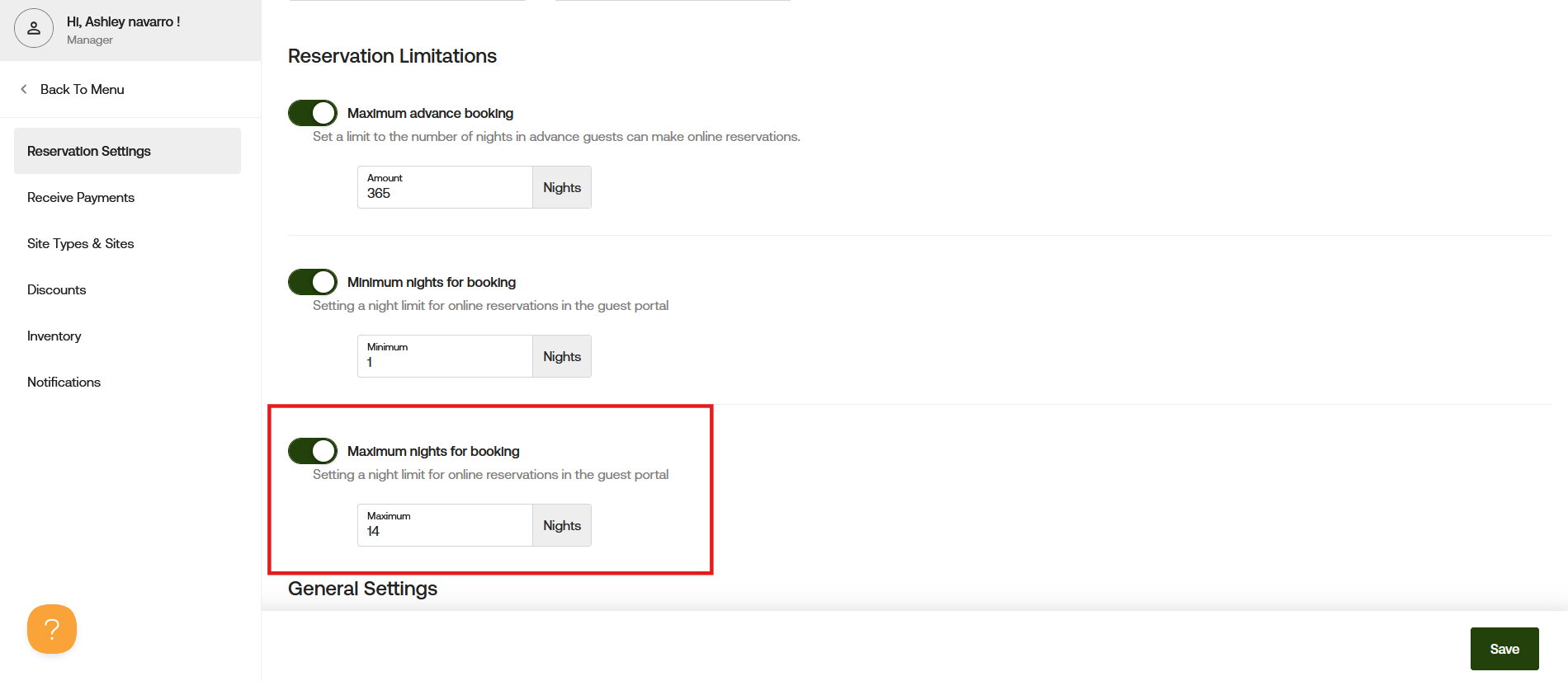 Settings Configuration: Maximum Nights for Booking