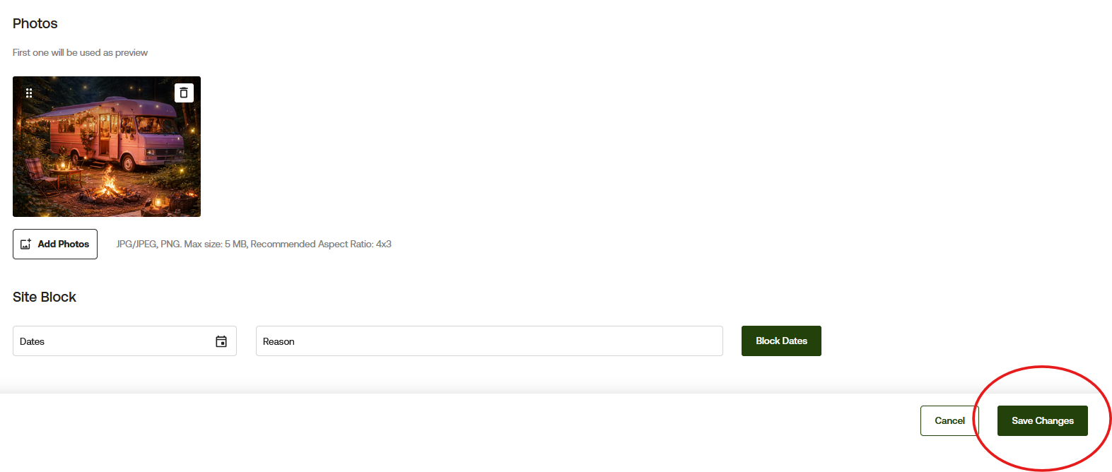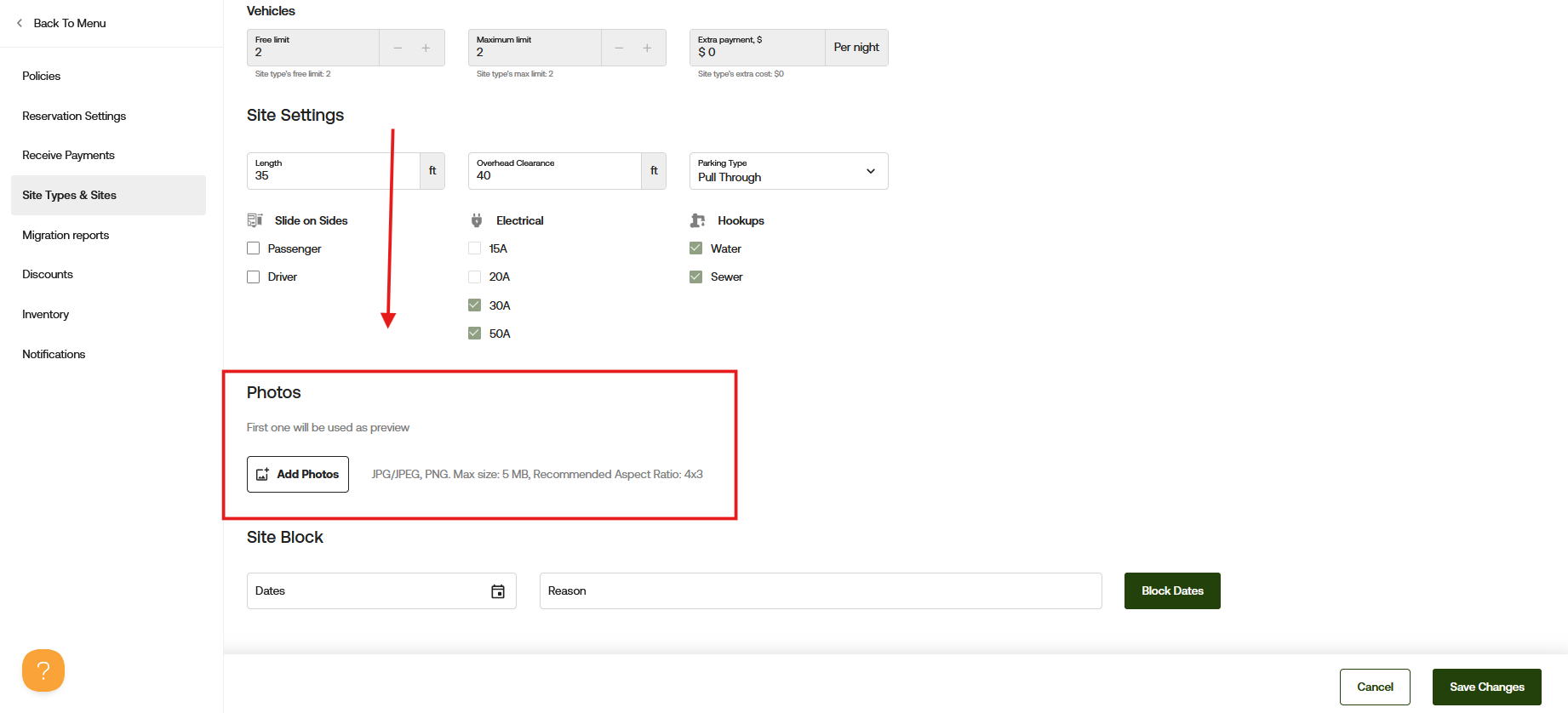 This article will walk you through how to add photos to an individual site and your site type within your campground settings.