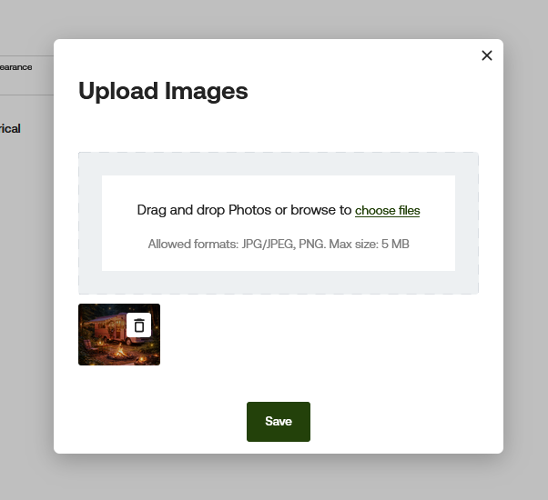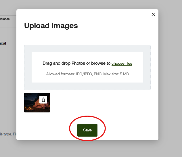 Once you select your photo, it will appear in the bottom left of the pop-up. Click Save to proceed.