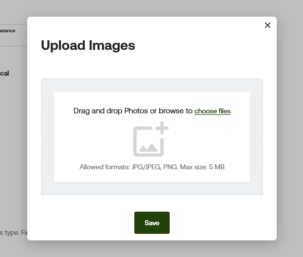 After selecting "Add Photos," a pop-up will appear on your screen. From here, you can drag and drop photos or browse to choose a file.