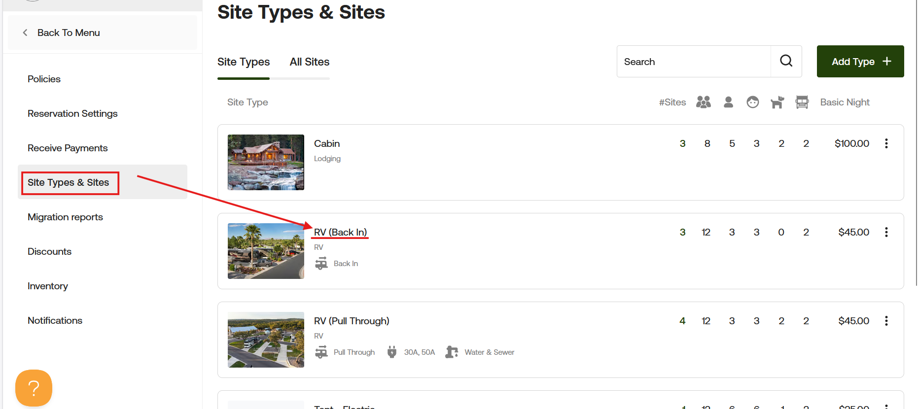 Next, go to "Site Types & Sites," locate your site type, and double-click the name to edit it.